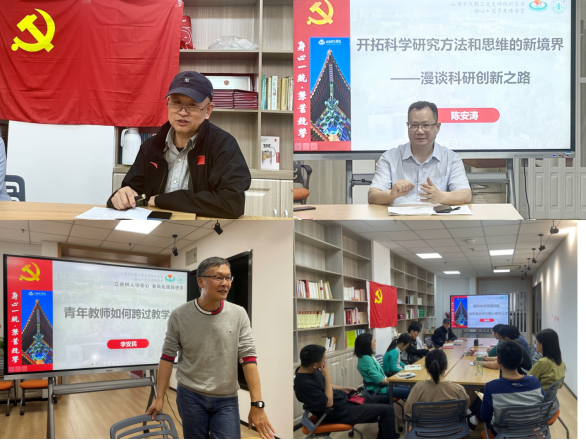 充分发挥班子学习的示范和辐射效应,创新融合师生支部主题教育工作,加强规范化、常态化、长效化学习。师生党支部依托“三会一课”、主题党日,通过交流研讨、宣讲阐释、案例教学等方式组织党员学习,落实“十个一”专项行动,推动主题教育有力有序开展、取得实效。同时,突出特色亮点,在推动主题成果转化上下工夫。打造2138cn太阳集团古天乐“励心”系列党建品牌活动:青年党员教师利用“励心·成长空间”分享自身经历,推动榜样效应;党员先锋周成林、李安民、陈安涛等教授开设“励心·先锋学堂”,带头解决学科发展和专业建设中的急难愁盼问题,将主题教育与实际问题解决紧密结合,实现党建业务双促双融双提升。将教工党支部与学生党支部结对共建、联合常态化开展党支部主题党日活动。组织师生党员红色影片《望道》的观摩学习;组织行走的党课,四行仓库等红色基地实地学习;联合长海路街道党委开展志愿服务等,将党建活动贯穿到专业学习、学科建设之中,内化到立德树人、人才培养之中。